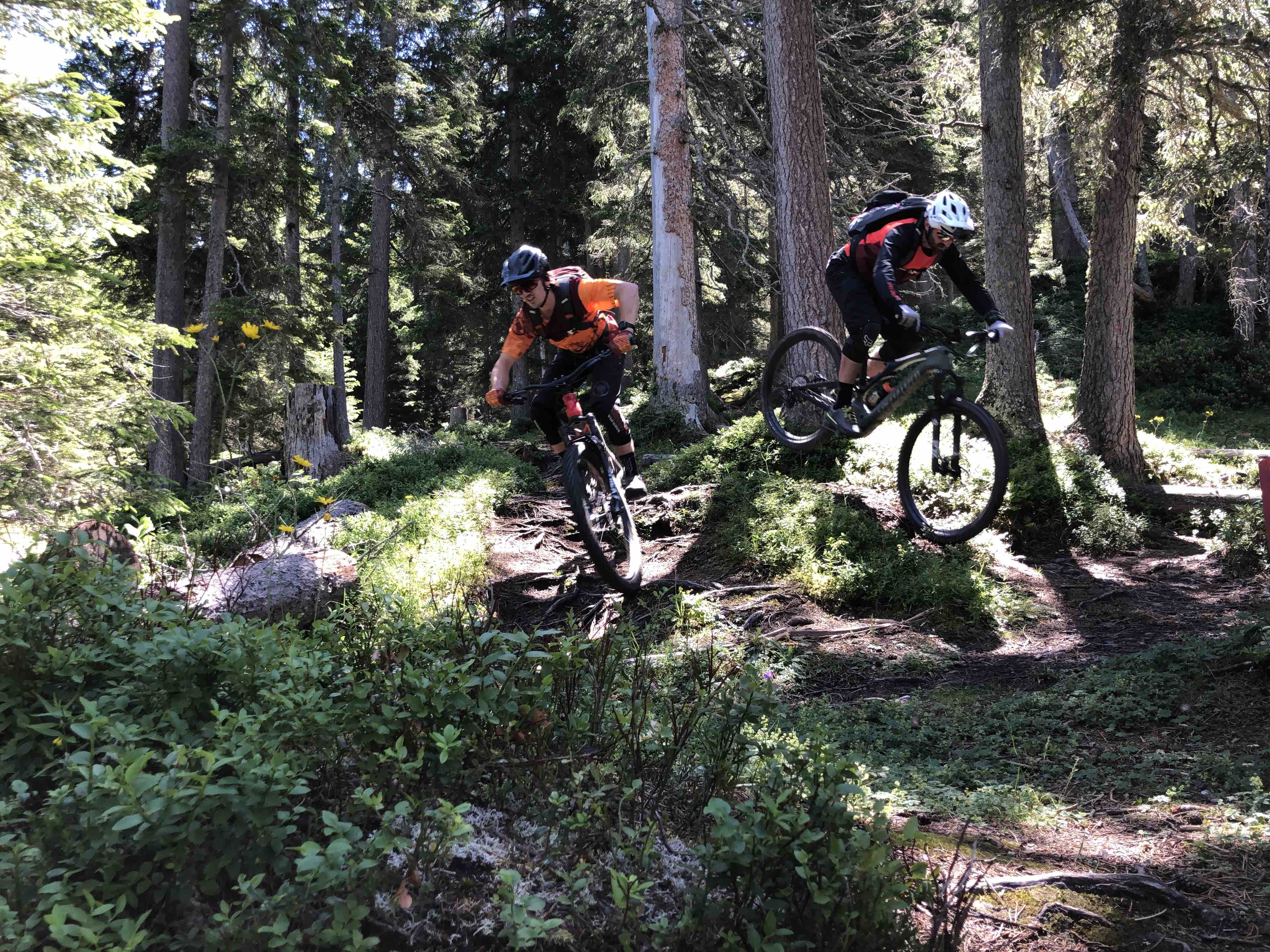 • Fahrtechniktraining am Parkplatz (Uphill Technik, Kurventechnik für Anlieger und Spitzkehren, Pumpen, Linienwahl, Fahren von hohen Stufen, Sprungtechnik)