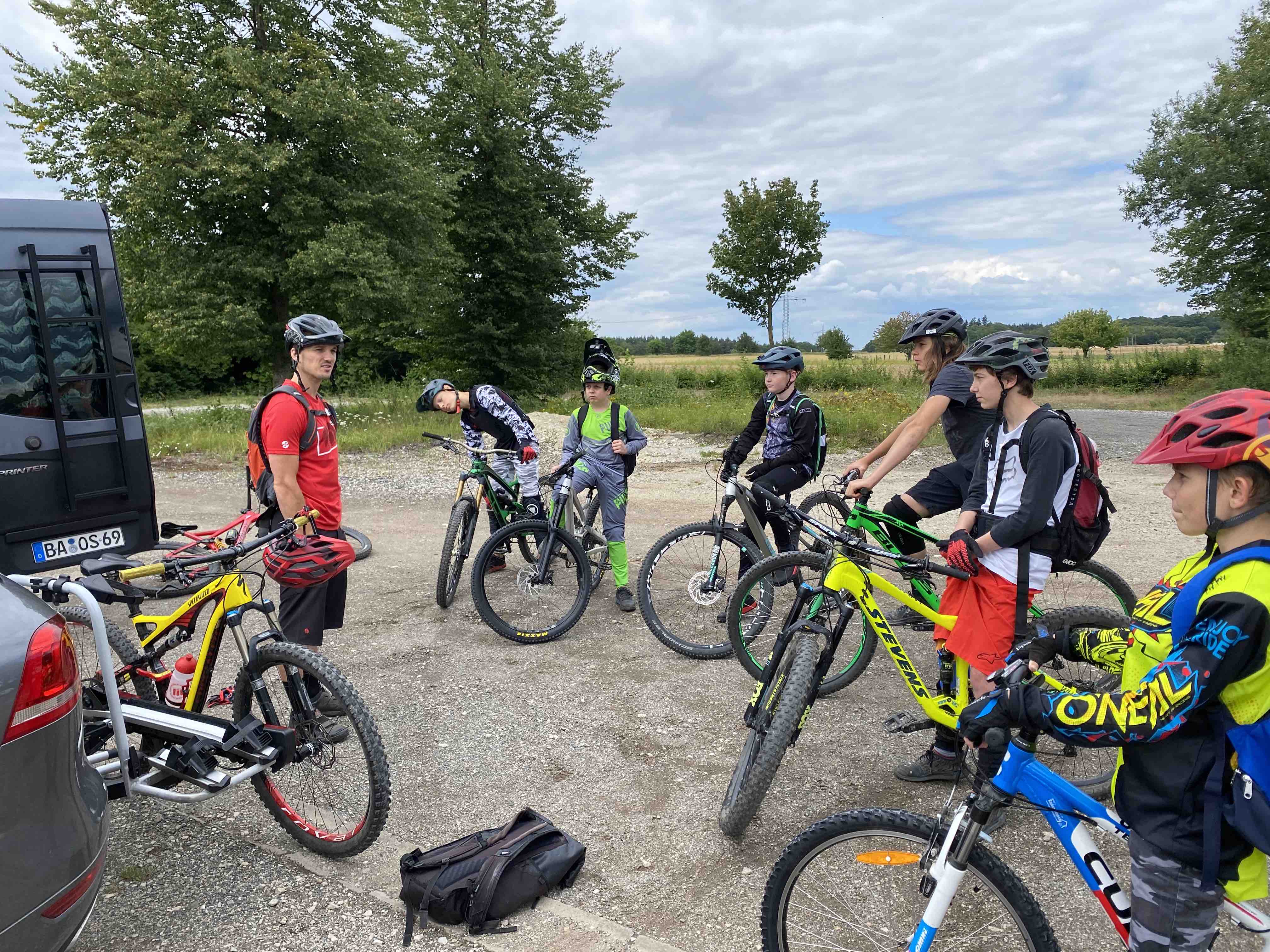 - Fahrtechniktraining am Parkplatz und auf Trails (Grundposition, Aktivposition, Bremsdosierung, Hindernisse überwinden)
